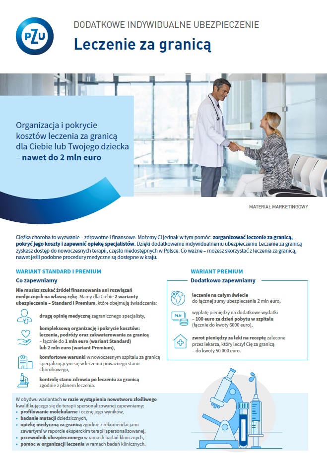 SKU/8036 | UlotkaDL_Indywidualne_dodatki – Leczenie za granicą_LZ_102025 | Ulotka informuje o tym, jak działa dodatkowe ubezpieczenie indywidualne leczenie za granicą (LZ). Możesz zostawić ją klientowi, aby mógł zapoznać się z produktem. | |